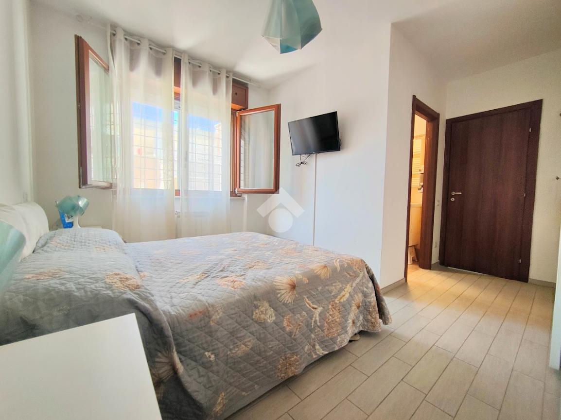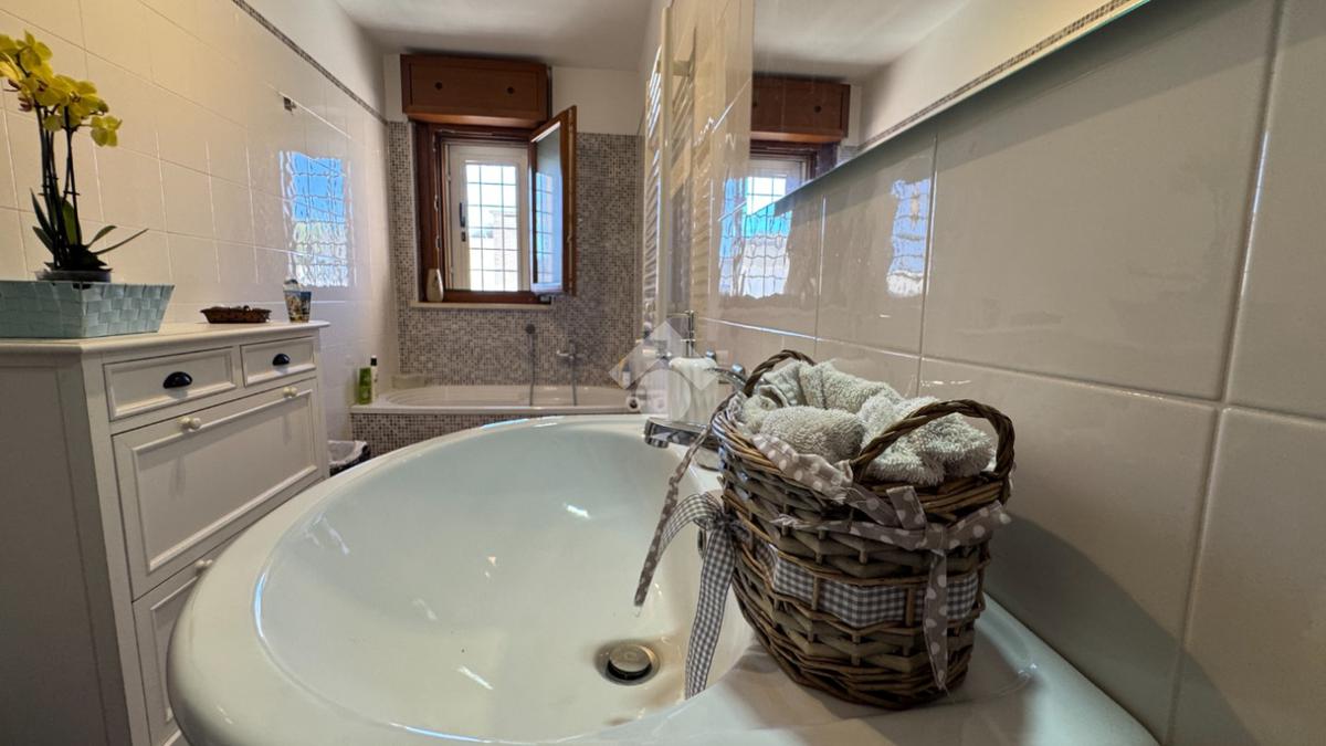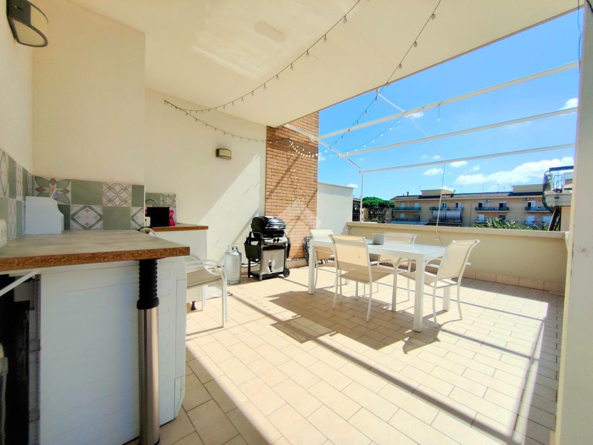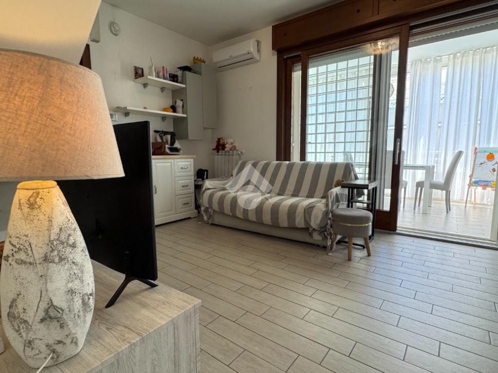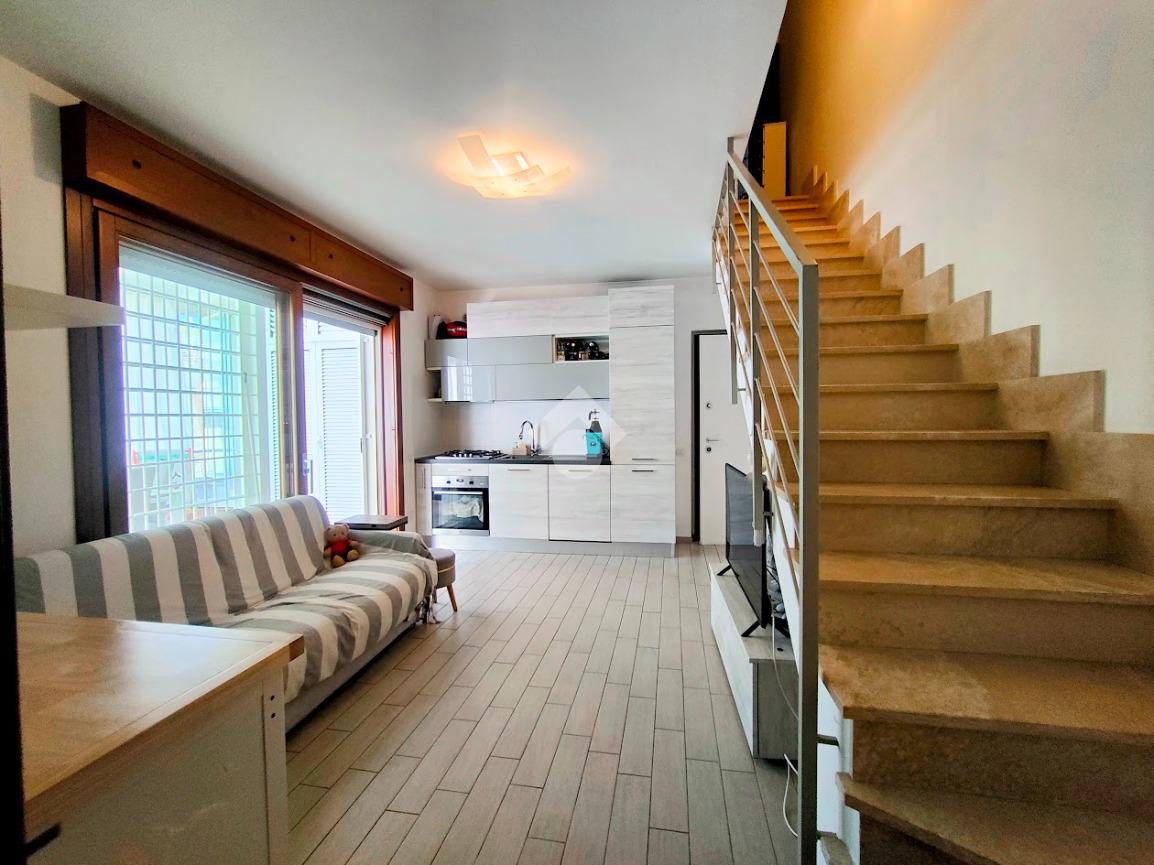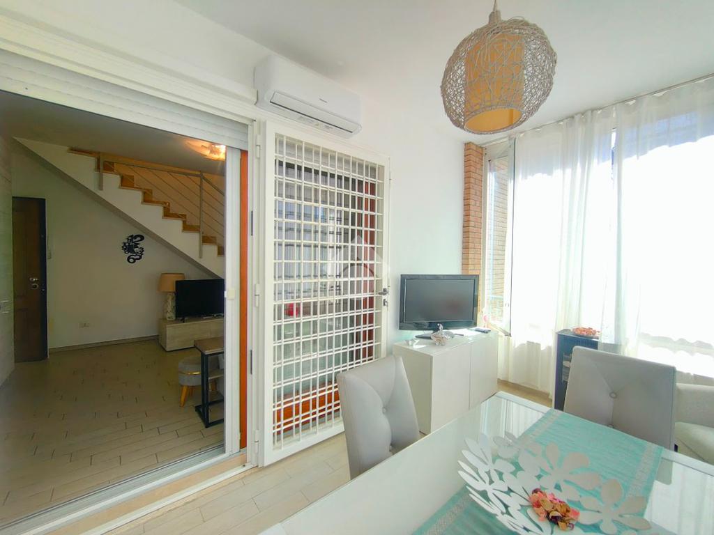 Entrando ci accoglie un soggiorno con angolo cottura, camera matrimoniale padronale con bagno privato finestrato completo di doccia e un comodo terrazzo rifinito con infissi amovibili per goderne anche d'inverno, ed ampio ripostiglio. Salendo al piano superiore troviamo una camera da letto e un ampio bagno finestrato completo di vasca. Due terrazzi attrezzati da vivere in pieno con cucina esterna e tende da sole.