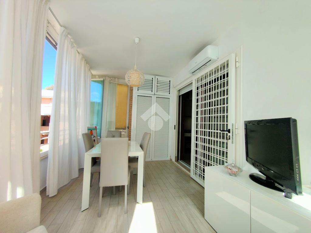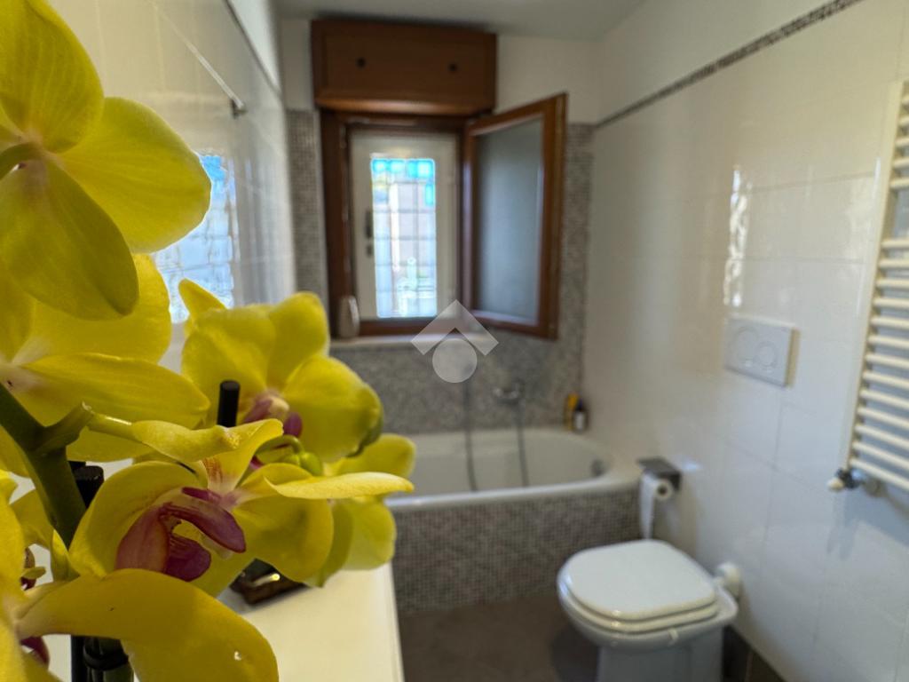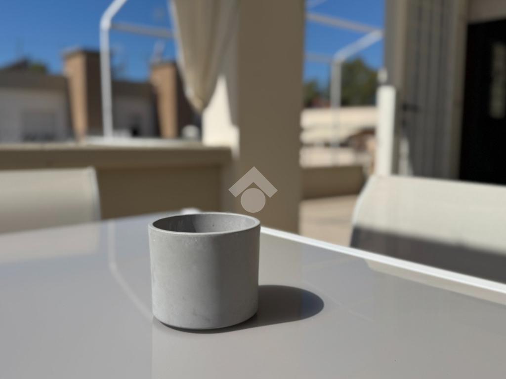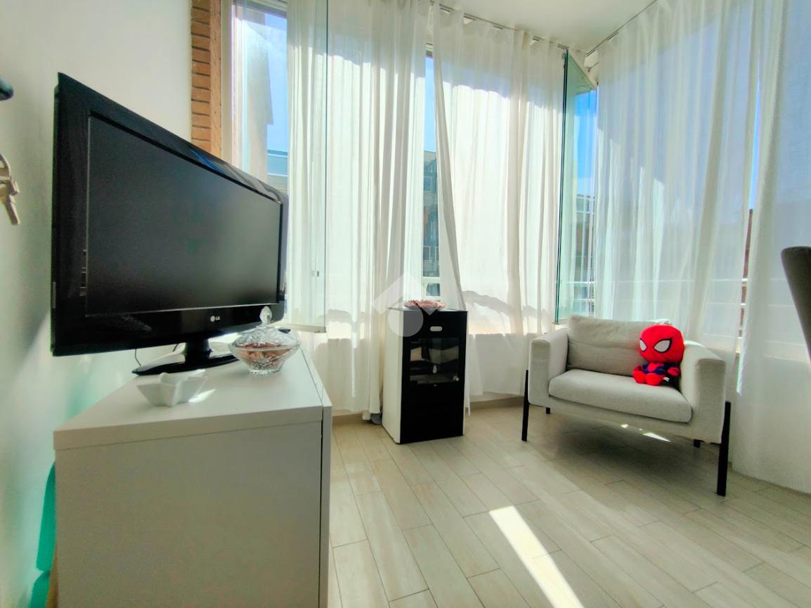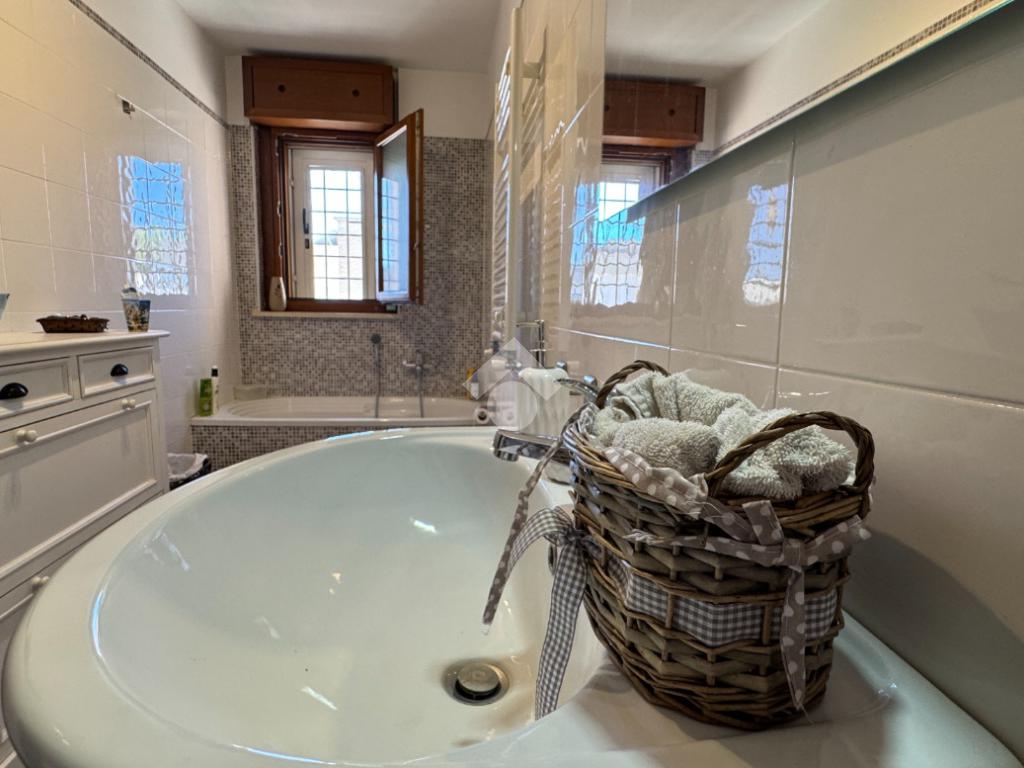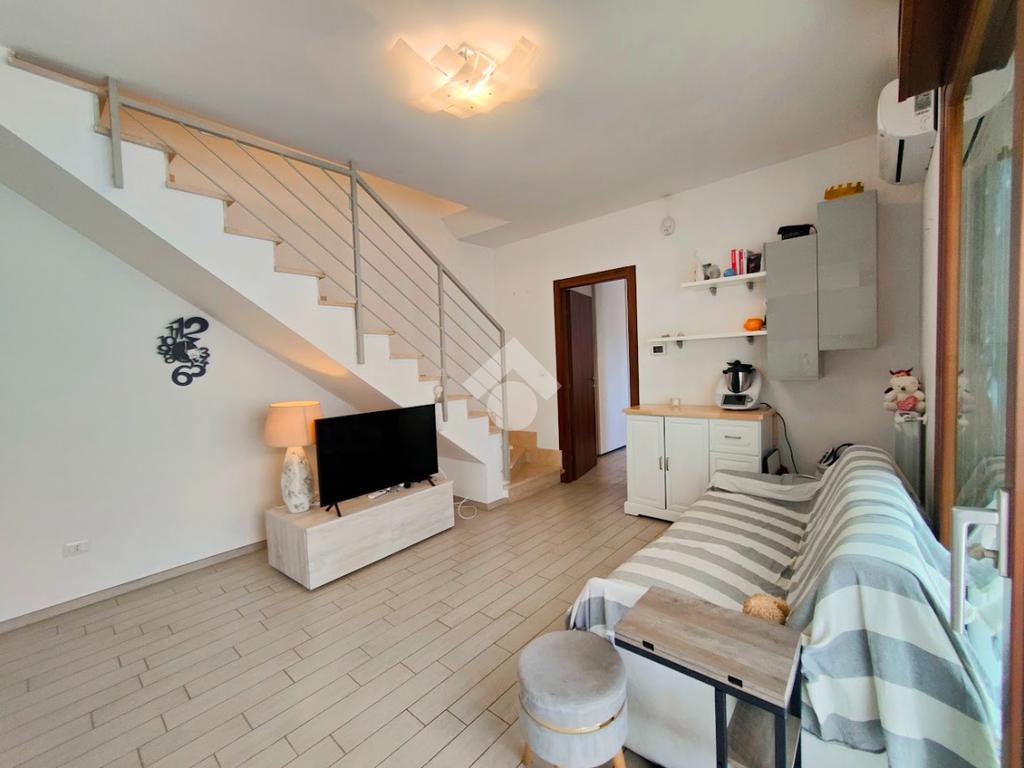 Entrando ci accoglie un soggiorno con angolo cottura, camera matrimoniale padronale con bagno privato finestrato completo di doccia e un comodo terrazzo rifinito con infissi amovibili per goderne anche d'inverno, ed ampio ripostiglio. Salendo al piano superiore troviamo una camera da letto e un ampio bagno finestrato completo di vasca. Due terrazzi attrezzati da vivere in pieno con cucina esterna e tende da sole.