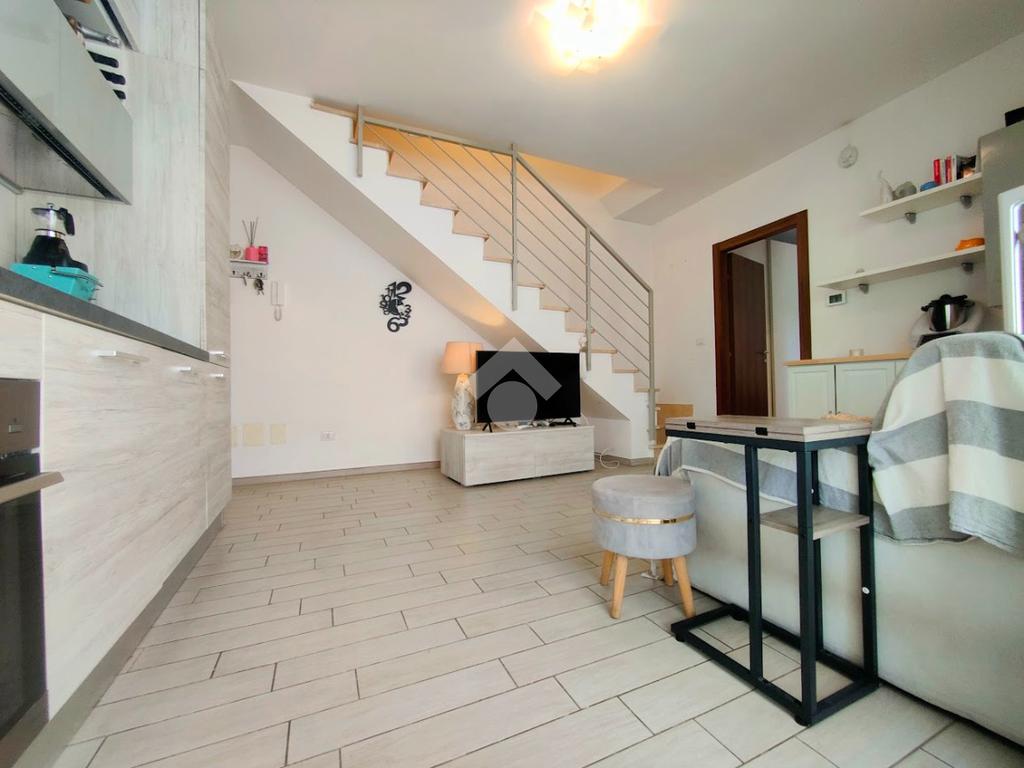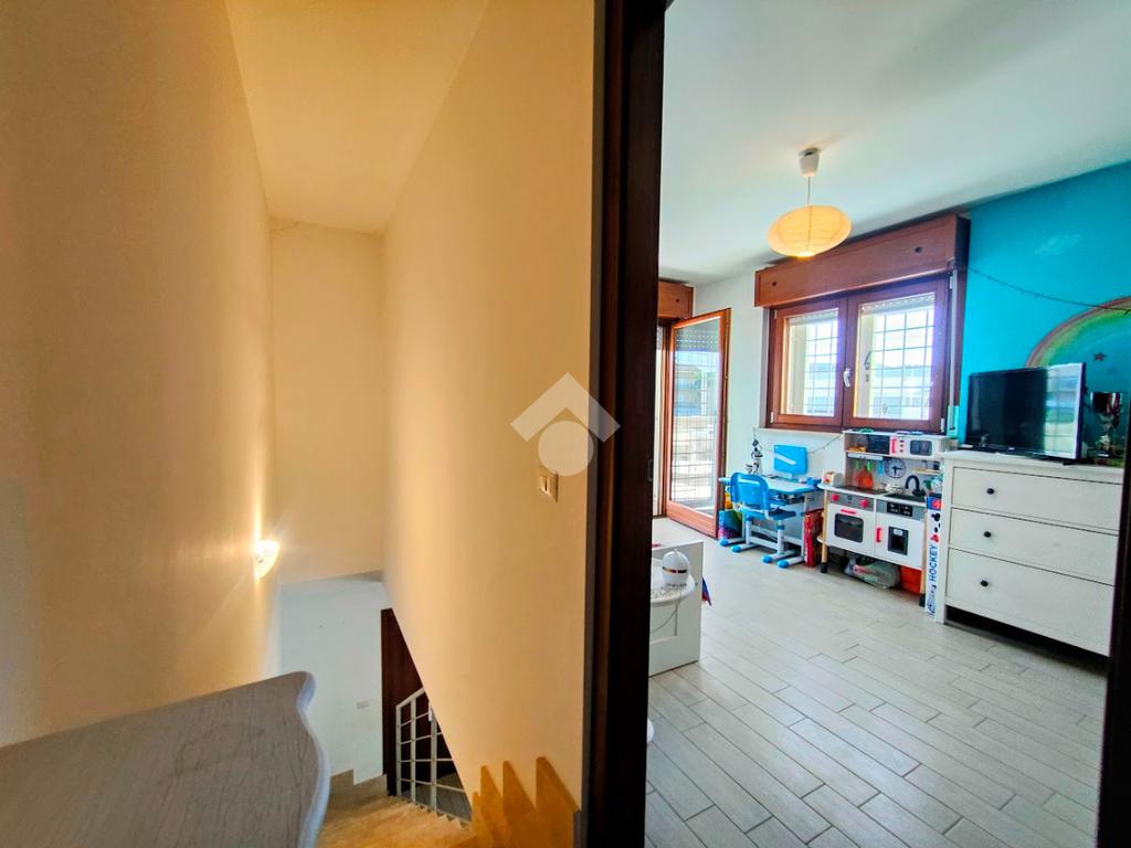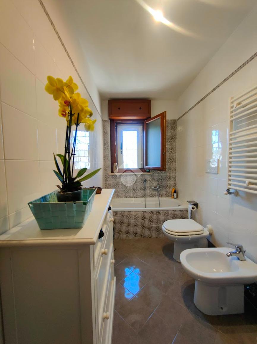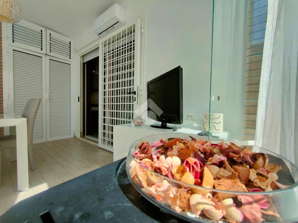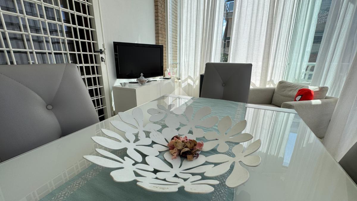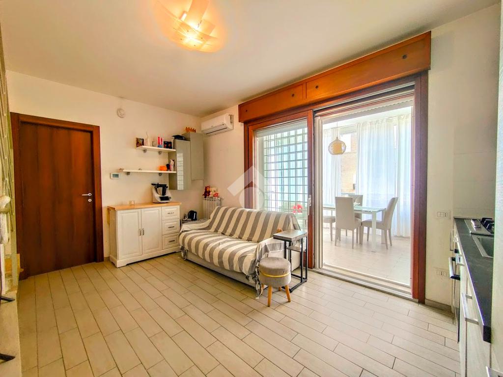 Entrando ci accoglie un soggiorno con angolo cottura, camera matrimoniale padronale con bagno privato finestrato completo di doccia e un comodo terrazzo rifinito con infissi amovibili per goderne anche d'inverno, ed ampio ripostiglio. Salendo al piano superiore troviamo una camera da letto e un ampio bagno finestrato completo di vasca. Due terrazzi attrezzati da vivere in pieno con cucina esterna e tende da sole.