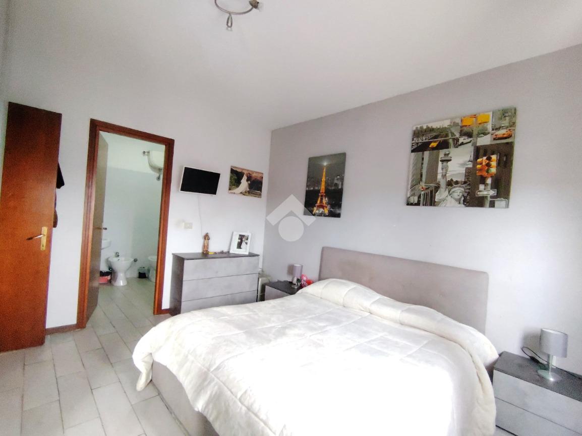 Entrando, siamo accolti da un ingresso e da un ampio salone che gode di una luminosità naturale grazie all'affaccio libero, cucina abitabile con balcone, il disimpegno ci accompagna nella zona notte composta da camera padronale con bagno cieco privato completo di doccia, seconda camera, secondo bagno finestrato completo di vasca.