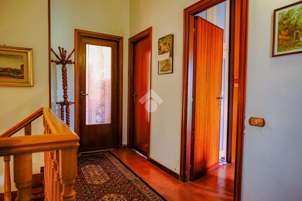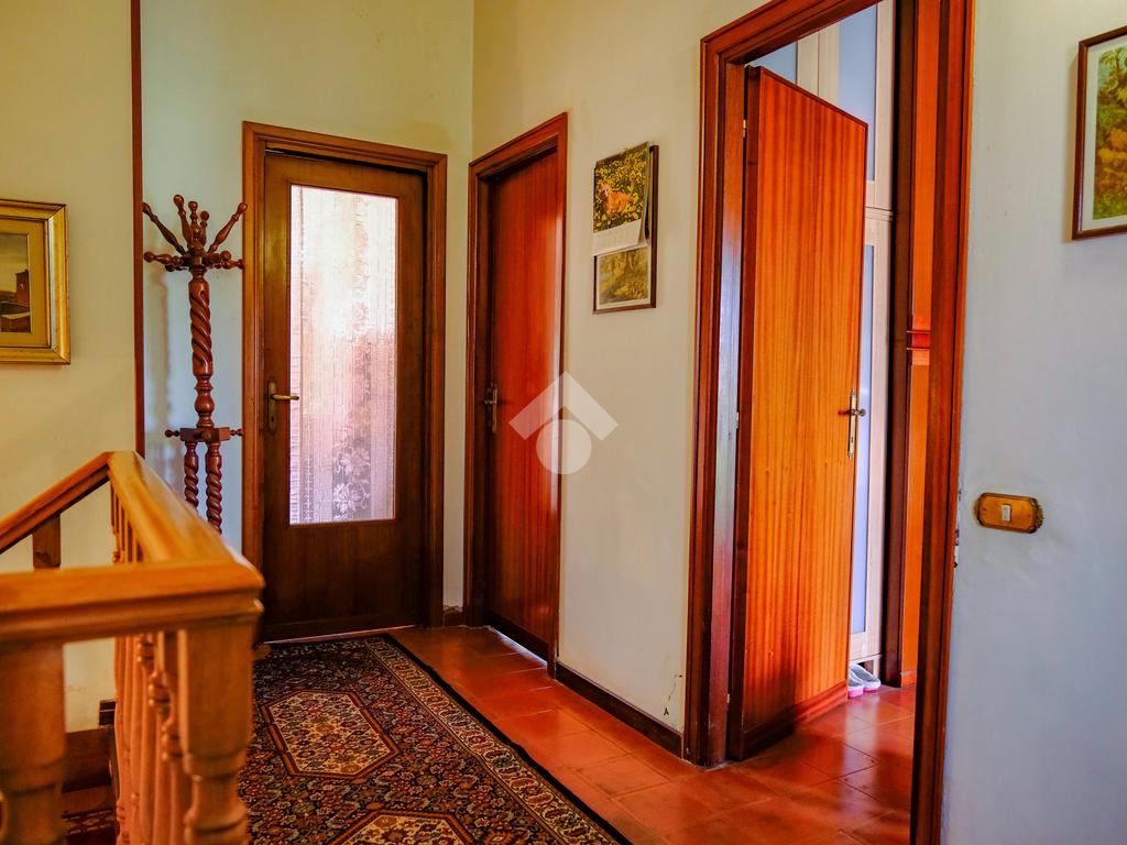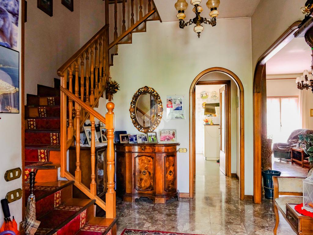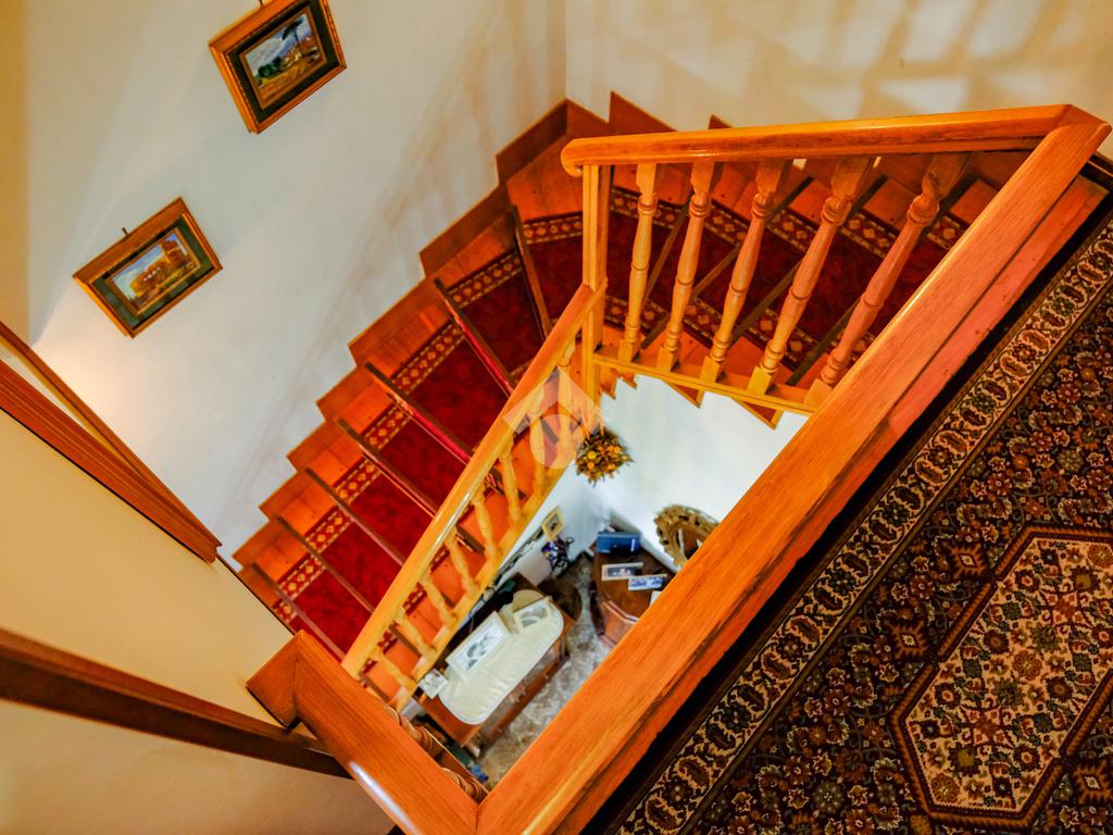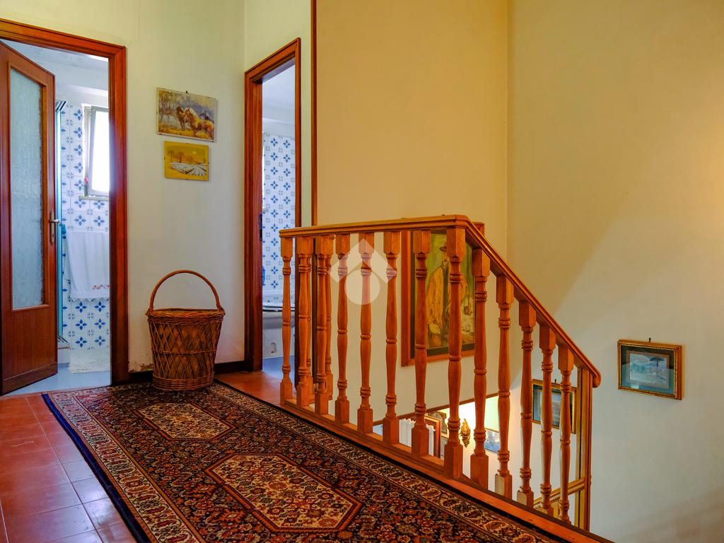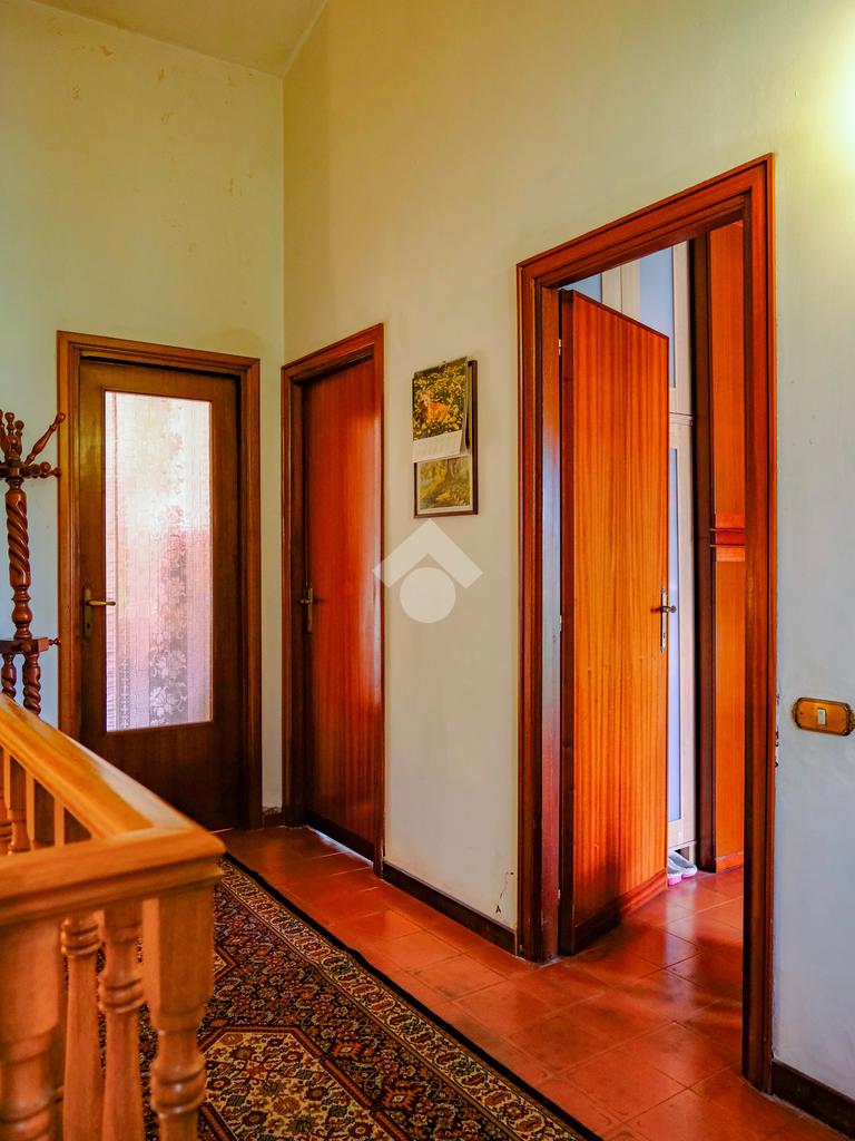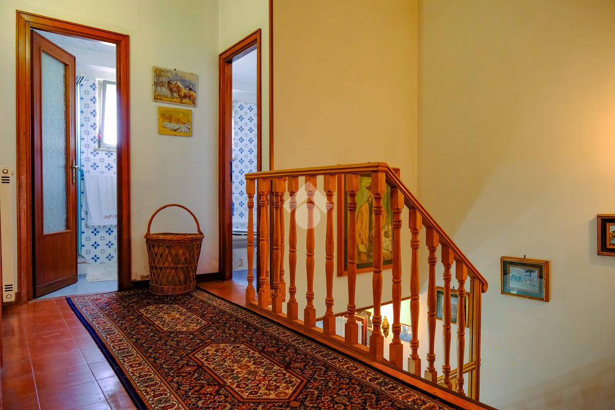 La casa si compone entrando dal giardino da ingresso, salone doppio con camino, disimpegno che porta nella cucina abitabile e giardino in parte pavimentato. Salendo al piano superiore, accolti da un comodo disimpegno troviamo tre camere da letto ognuna con balcone privato e due bagni entrambi finestrati uno con doccia e uno con vasca.