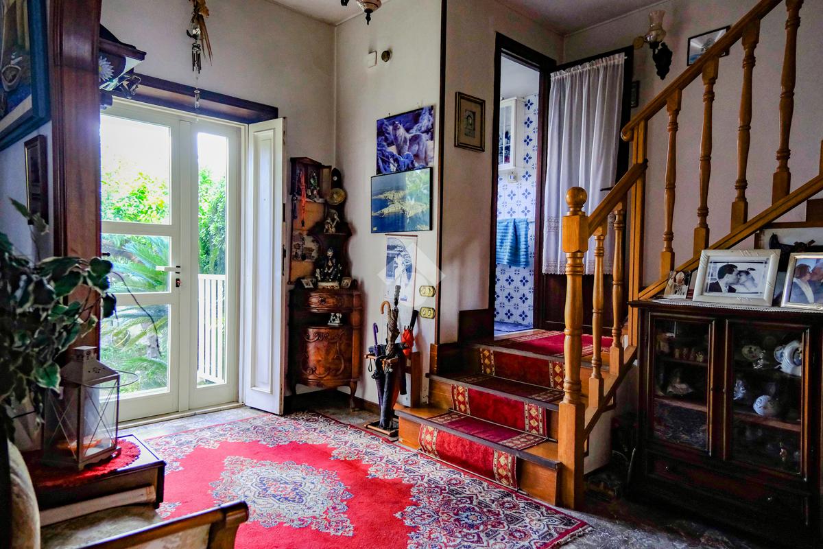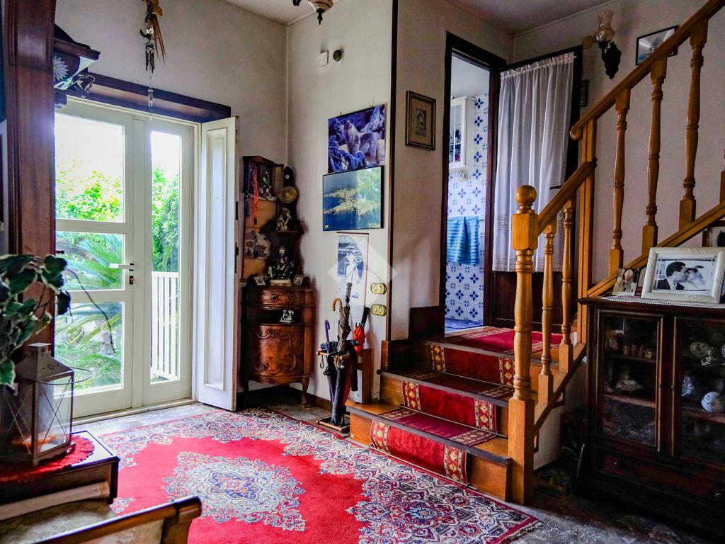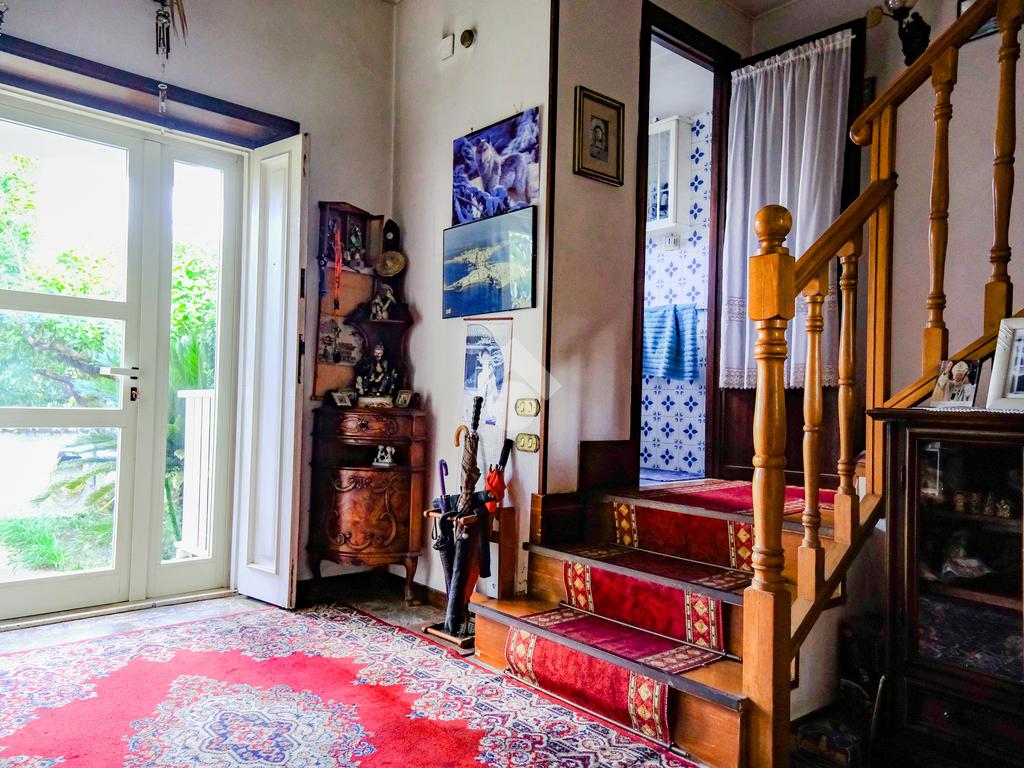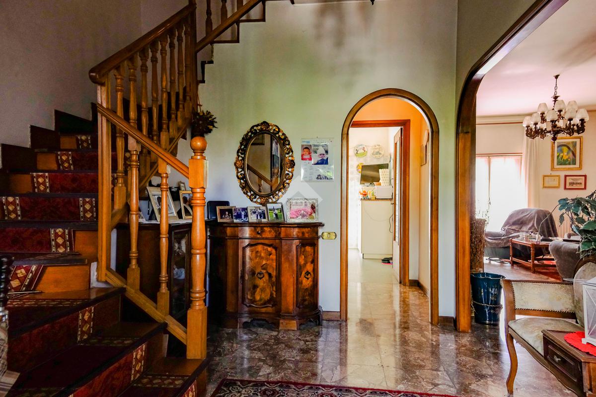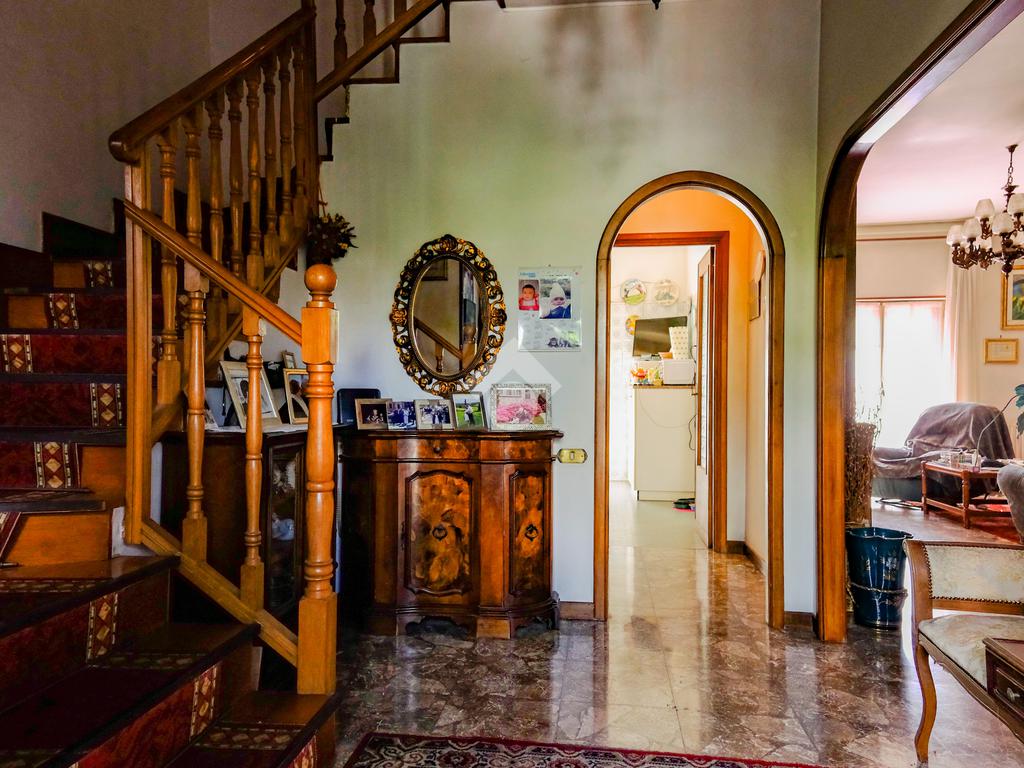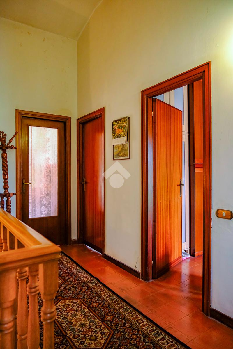 La casa si compone entrando dal giardino da ingresso, salone doppio con camino, disimpegno che porta nella cucina abitabile e giardino in parte pavimentato. Salendo al piano superiore, accolti da un comodo disimpegno troviamo tre camere da letto ognuna con balcone privato e due bagni entrambi finestrati uno con doccia e uno con vasca.